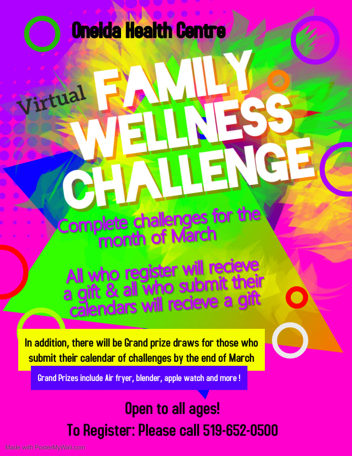 Complete challenges for the month of March. Must register to participate. All who register will receive a gift and all who submit their calendars will receive a gift. Open to all ages To register: Please call 519-652-0500